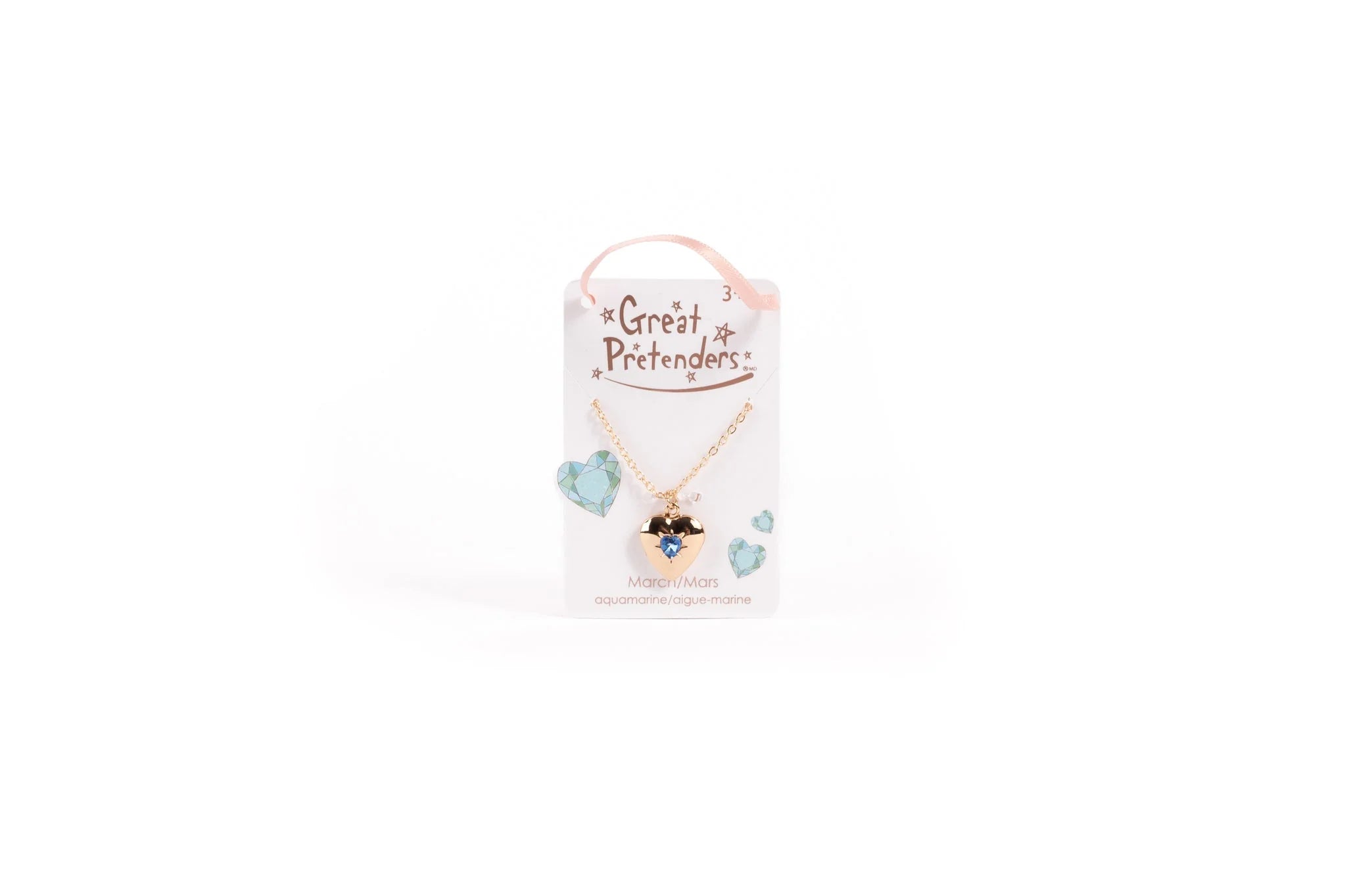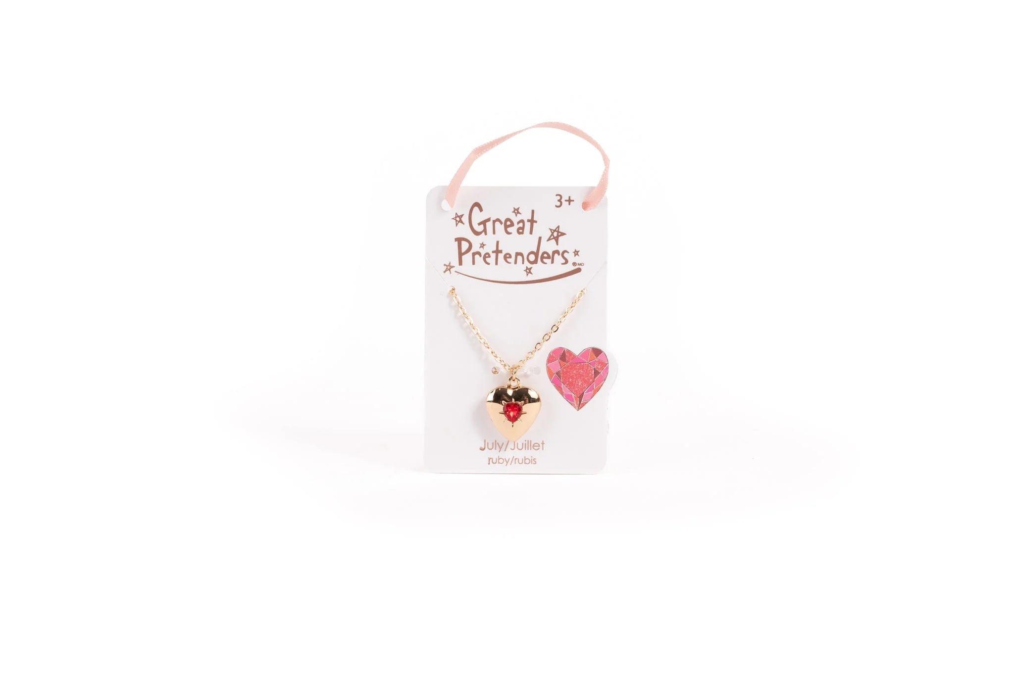 This gold-coloured pendant is heart-shaped and features a replica birthstone, hanging from a dainty chain.