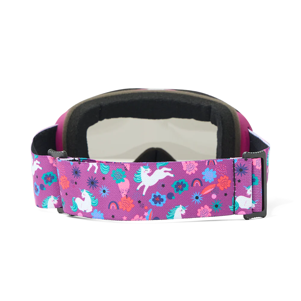 Keep little eyes happy on the hill. These kids’ ski goggles (ages 3–6) offer clear, comfortable vision for skiing, tubing, and winter play. The cylindrical grey lens with OPTIK ULTRA tech delivers sharp contrast in average sunlight (VLT 31%) with 100% UVA/UVB protection. Anti-fog treated, helmet compatible, and lined with soft foam. Available in multiple fun prints. Includes a goggle sock for cleaning and storage.