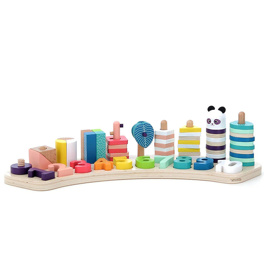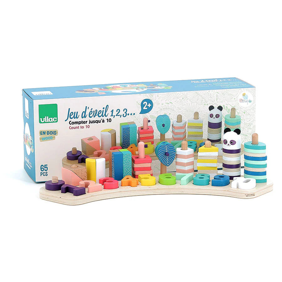 Created by our team of designers and childhood experts, this toy is a great aid for childrens development. Doing, undoing, redoing tirelessly allows children to grow while having fun. This toy allows them to develop their manual and visual coordination, to observe, to learn about numbers from 1 to 10, to sort by colour and to classify, notions that they will acquire naturally. Accompanied by their parents, the children discover all the richness that this wooden toy offers. Designed so that children can also make discoveries on their own, this early learning toy also complies with the Montessori teaching approach. Includes 65 wooden pieces.