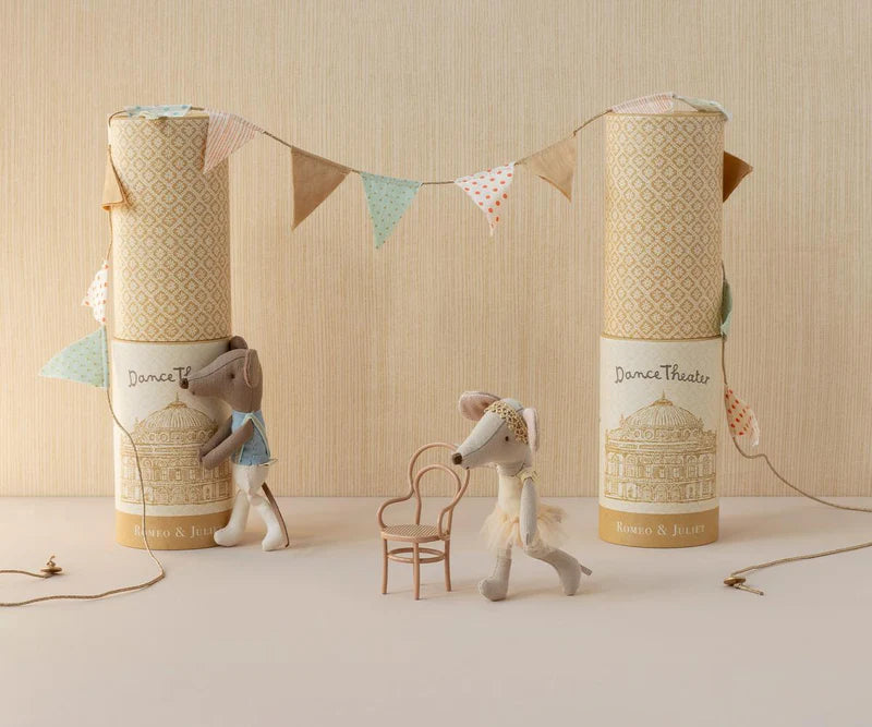 This ballet dancer mouse is the star of the stage! Dressed in a dancing suit with golden suspenders, Big Brother is ready for his grand performance in Romeo and Juliet. He arrives in a beautifully decorated tube and comes with a metal stand, so he can perform wherever you wish. His magnetic paws allow for a graceful dance rehearsal with his partner.