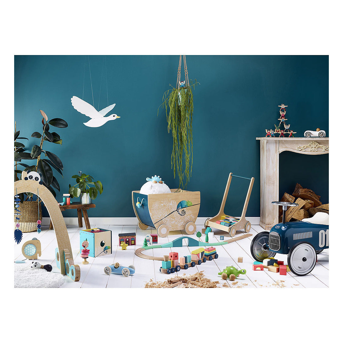 VILAC Wooden grand express train set includes Grand Express train and wooden tracks with artwork by Ingela P. Arrhenius and presented in a vintage suitcase. Includes 40 pieces. Box measures approximately 48 x 28 x 6 cm. Safety rated for ages 3+.