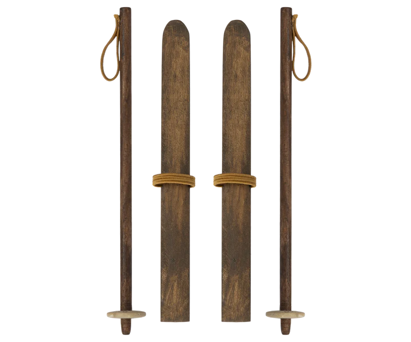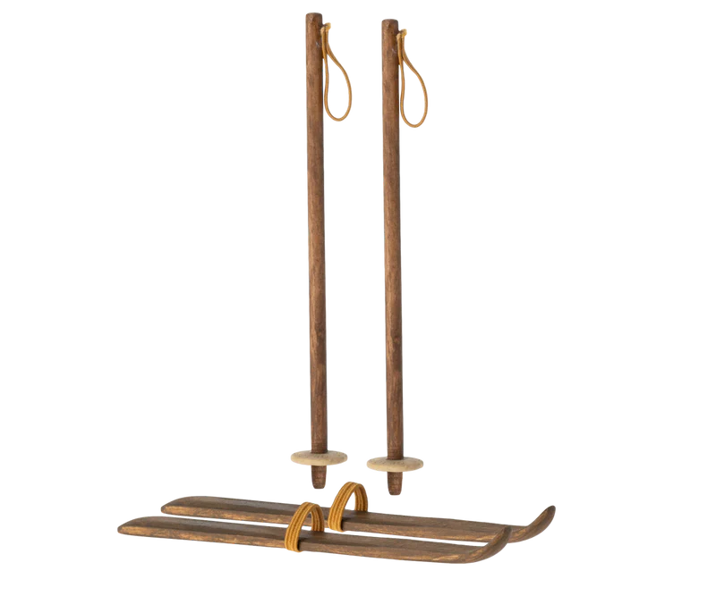 The perfect winter activity in the snow. With this set your mice can have a lovely day on the slopes. Ski and poles are made in wood and the elastic band makes it easy to fasten on mouse feet and paws. Fits Mum and Dad size mice.