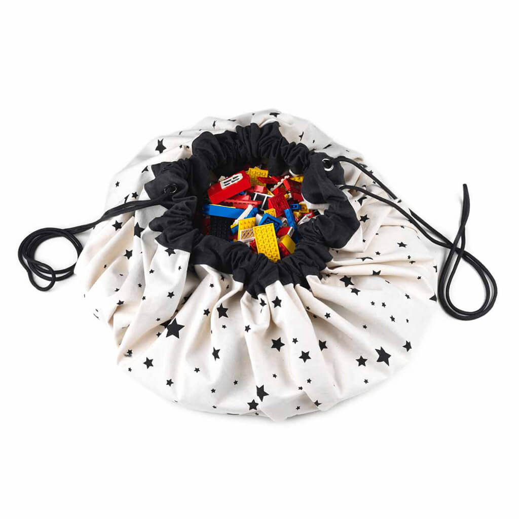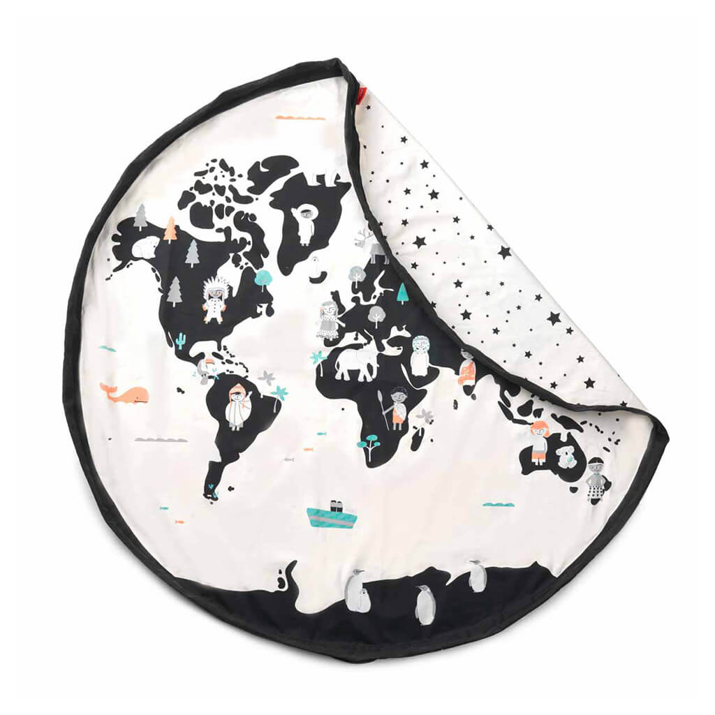 Can you find the grizzly bear in Canada? Did you see the surfer boy all the way down under in Australia? Count the penguins in the Arctic... Discover the world of Play and Go with this double printed worldmap storage bag with starry sky outside print! Be good to your toys with this funny, elegant pattern designed with top-notch materials.